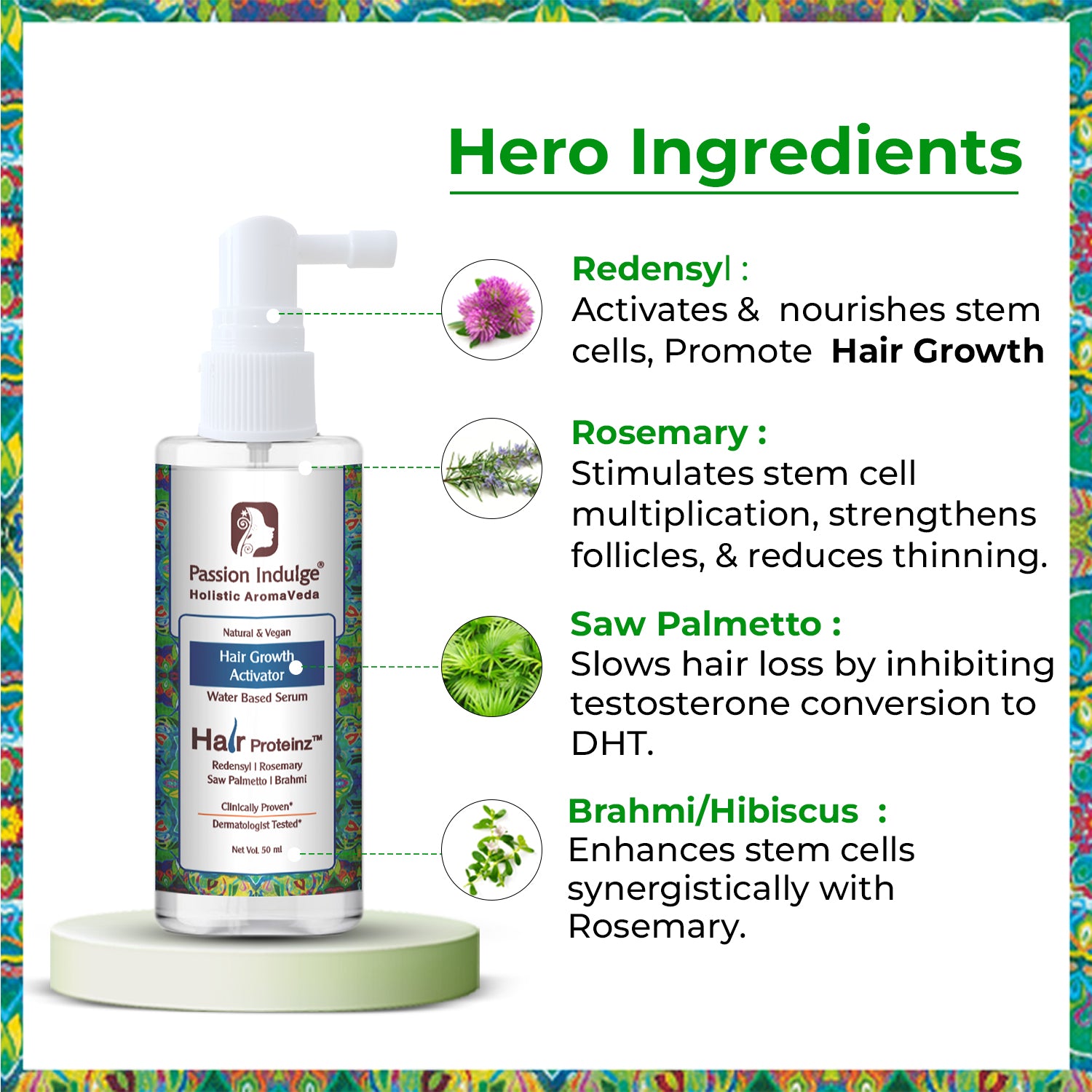 سرم رشد مو از ردنسیل، رزماری، نخل اره ای و براهمی ساخته شده است.