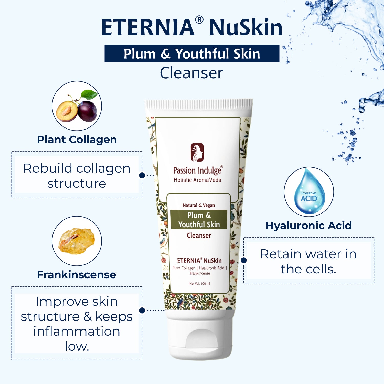 Eternia NuSkin Cleanser 100ml For Youthful Skin, Anti-Aging | Anti-Wrinkle | Reduces Fine Lines & Wrinkles | Skin Hydration & Nourishes | Healthy Skin With Plant Collagen, Hyaluronic Acid & Frankincense | Natural