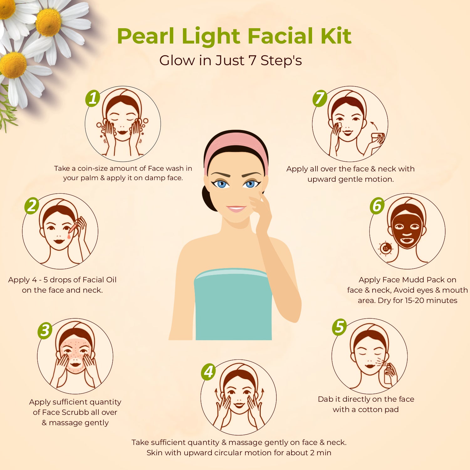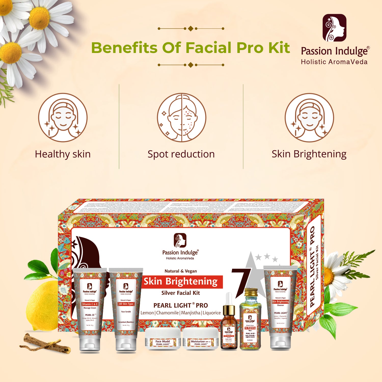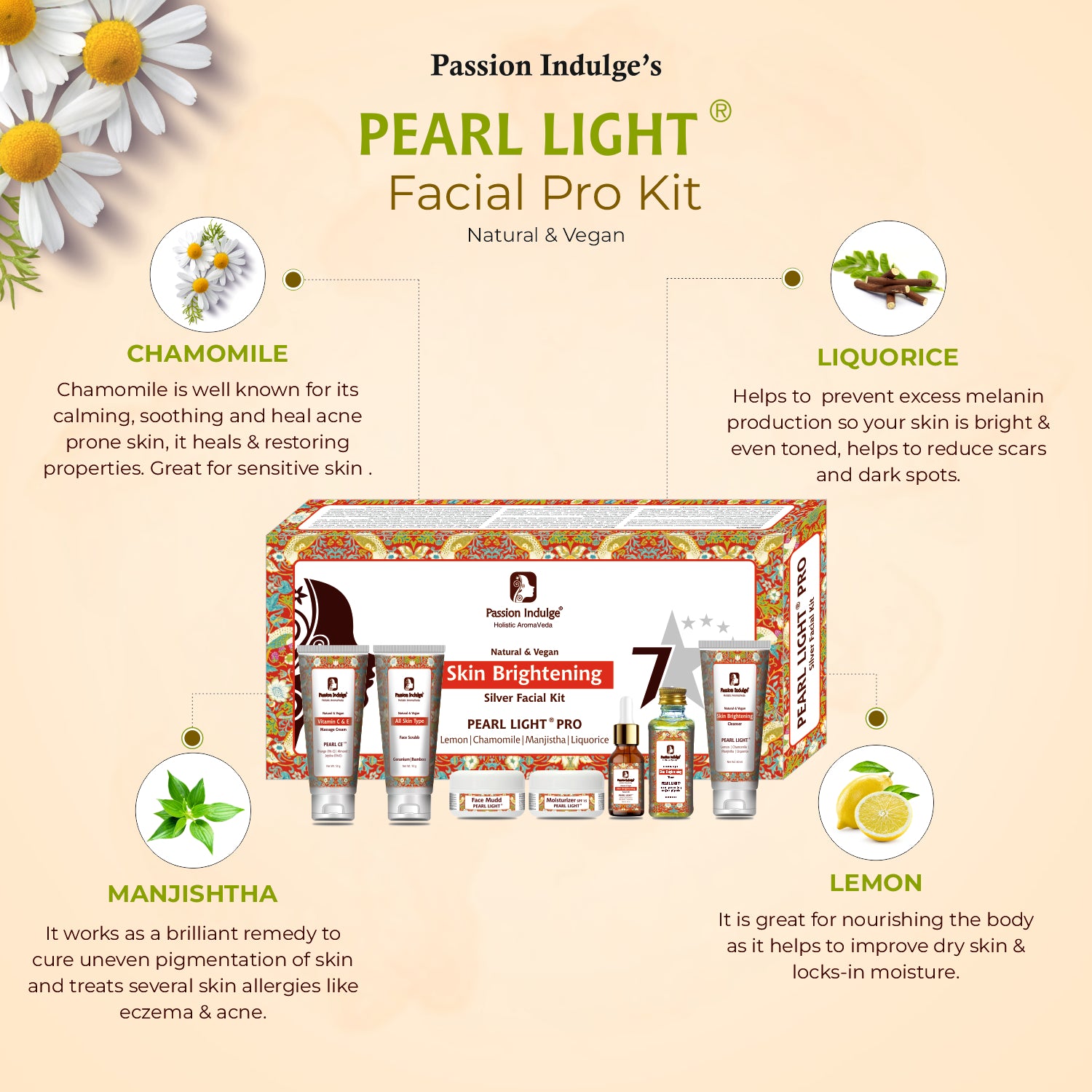 Pearl Light 7 Star Pro Facial Kit For Skin Brightening & Shine With Lemon, Chamomile, Manjistha, Liquorice| All Skin Types | Natural & Vegan | professional Kit| skin lightening| spot reduction | 7 steps