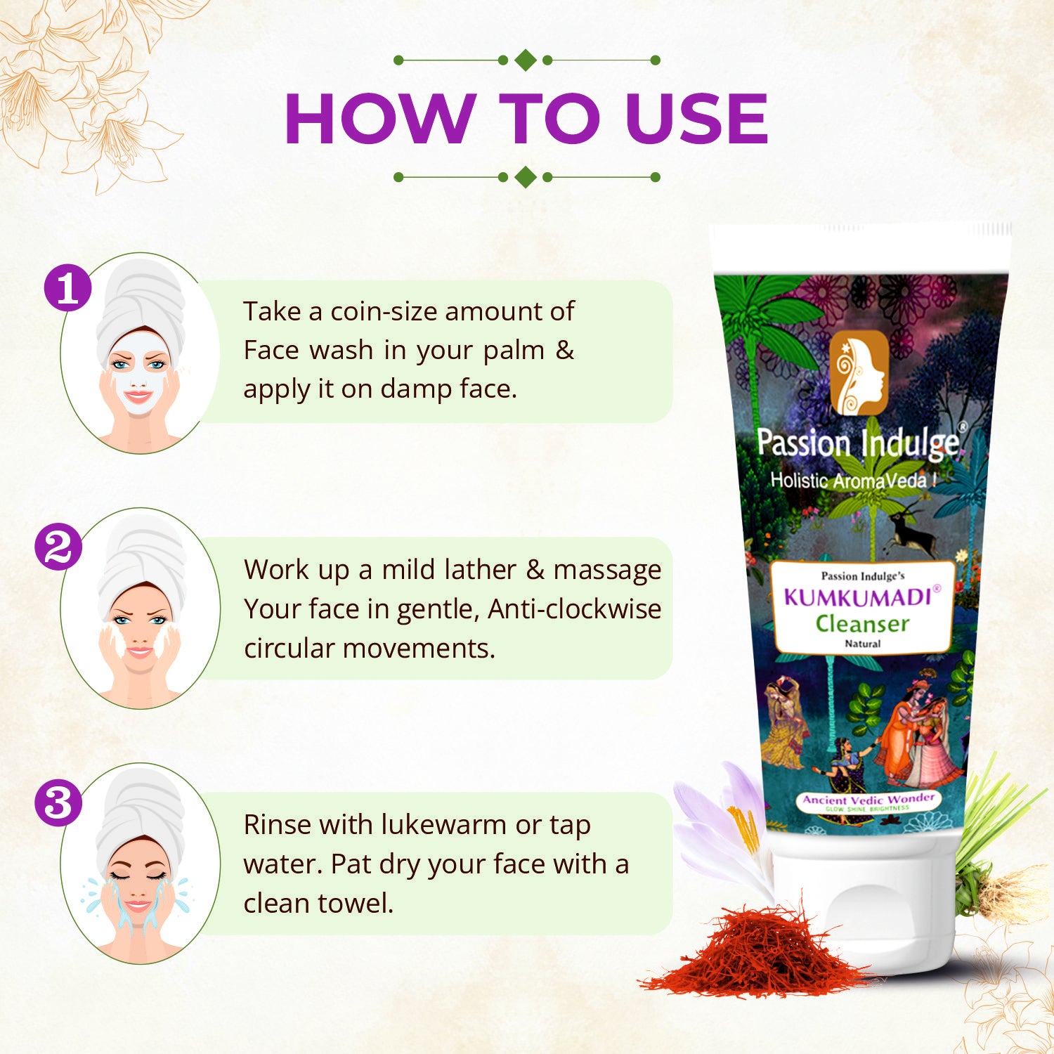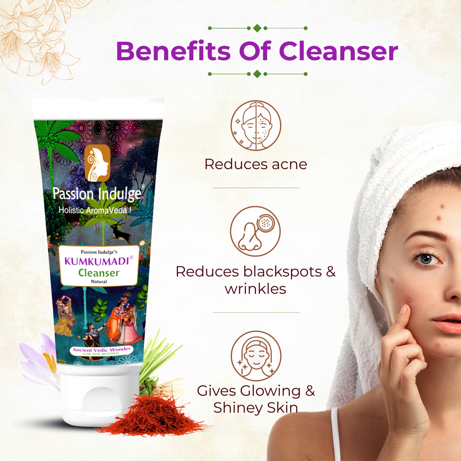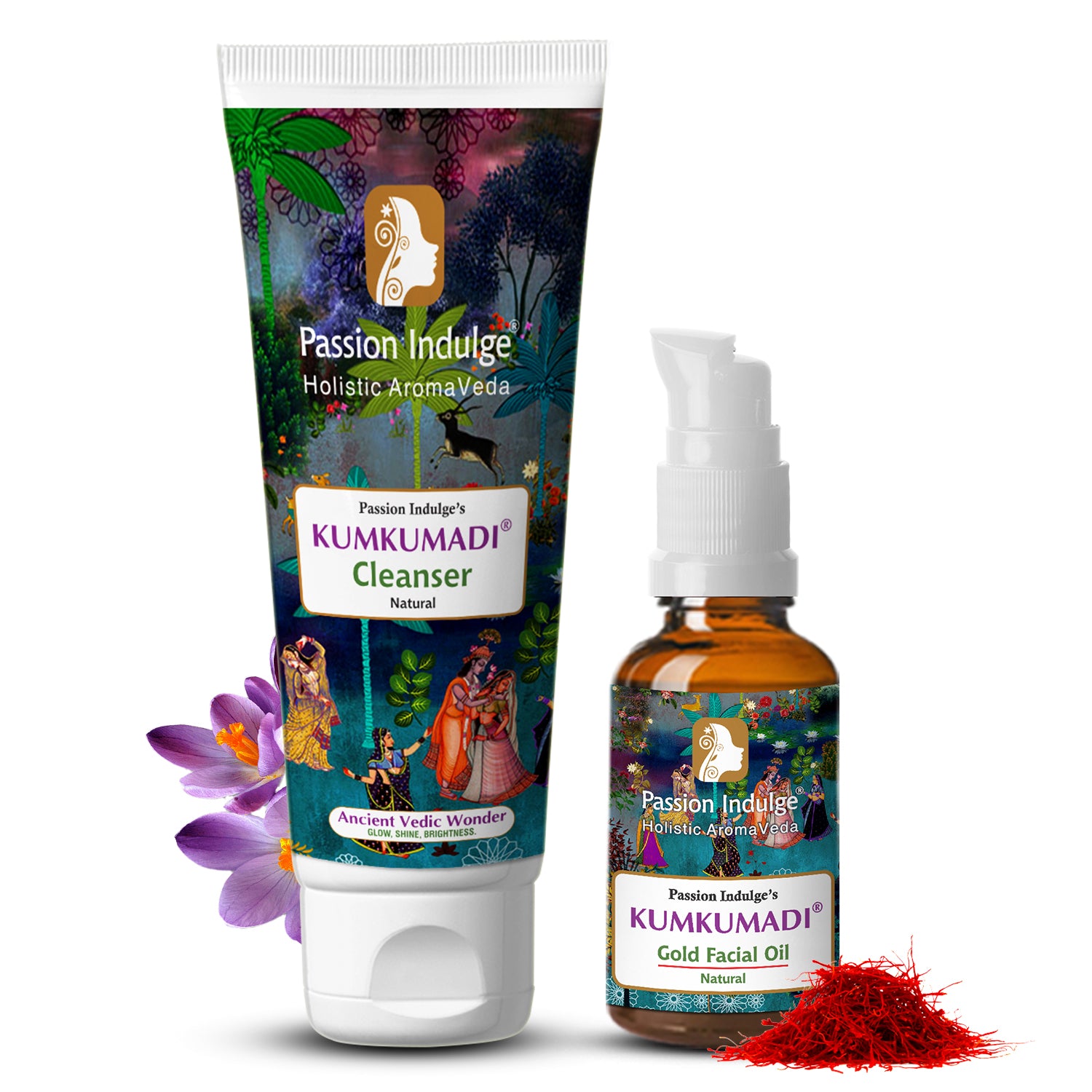 Kumkumadi Facial Oil 10ml & Cleanser 100ml For Glowing Skin | Shine & Brightness | Anti Ageing | Anti Wrinkle | Pigmentation | With Saffron, Vetiver & 16 Herbs | Natural & Ayurvedic | for all Skin Type