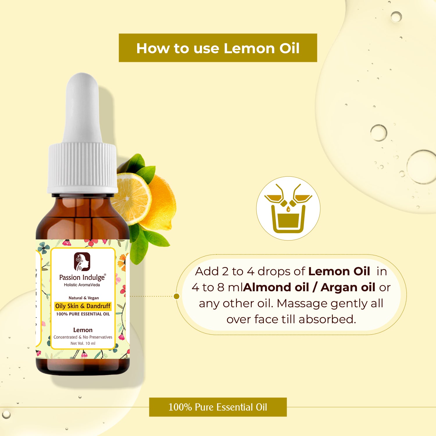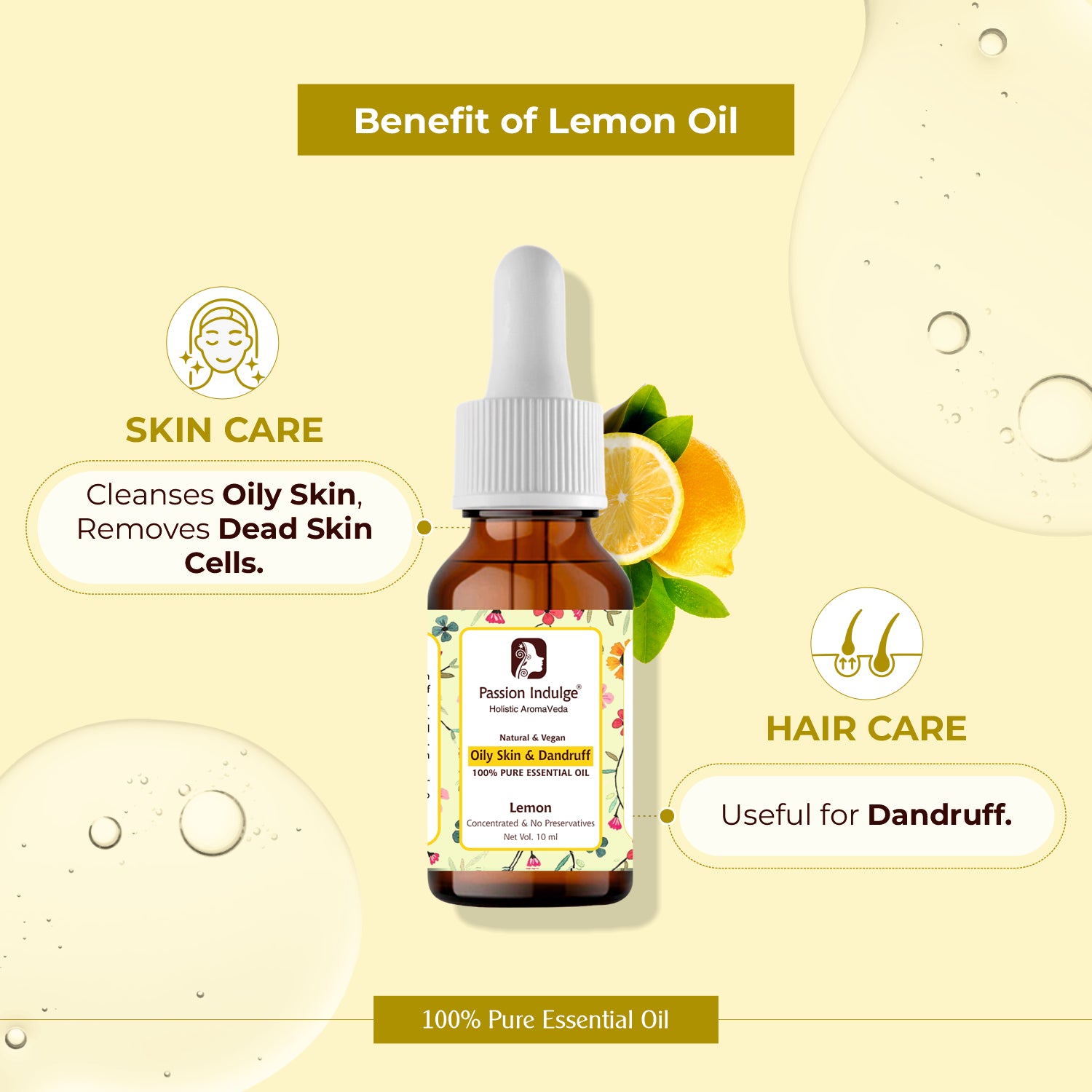 Lemon Essential Oil for Removes Dead Skin Cells | Rejuvenates dull skin | Useful in Hair Dandruff Control - 10ml