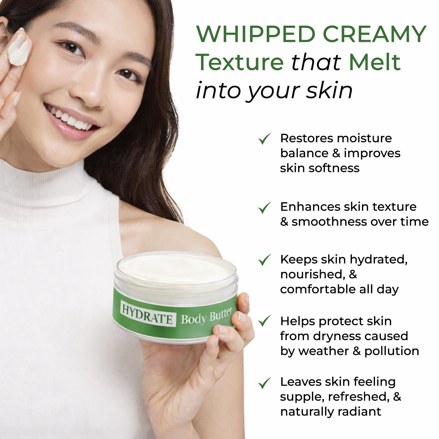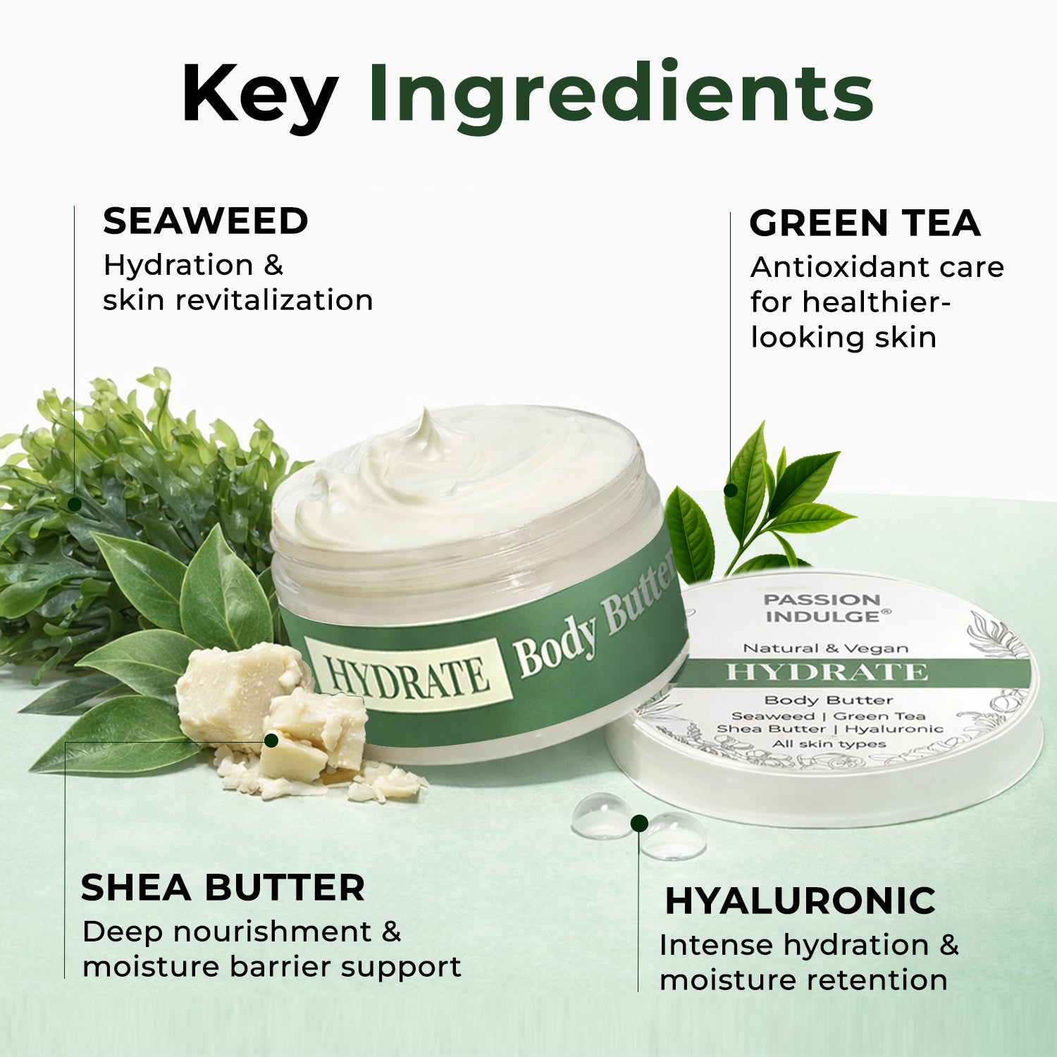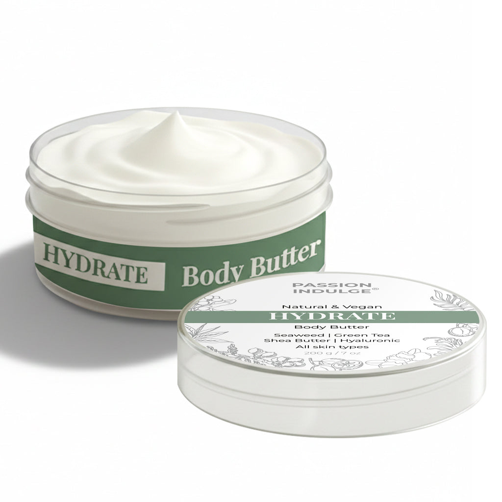 Passion Indulge Body Butter Moisturizer for Dry Skin | Deep Hydration with Shea Butter, Seaweed Extract, Green Tea & Hyaluronic Acid | Non-Sticky, Non-Greasy Formula 200g