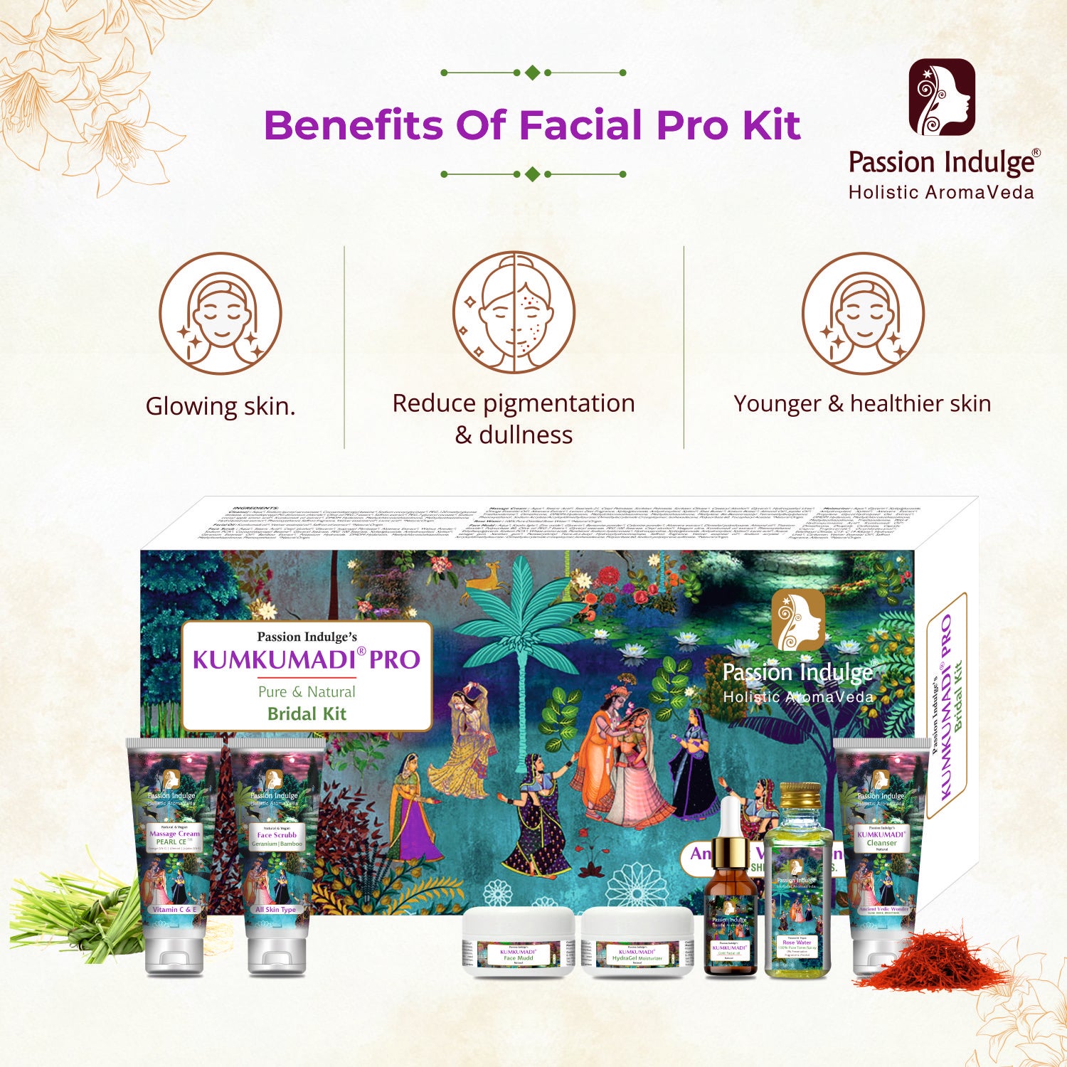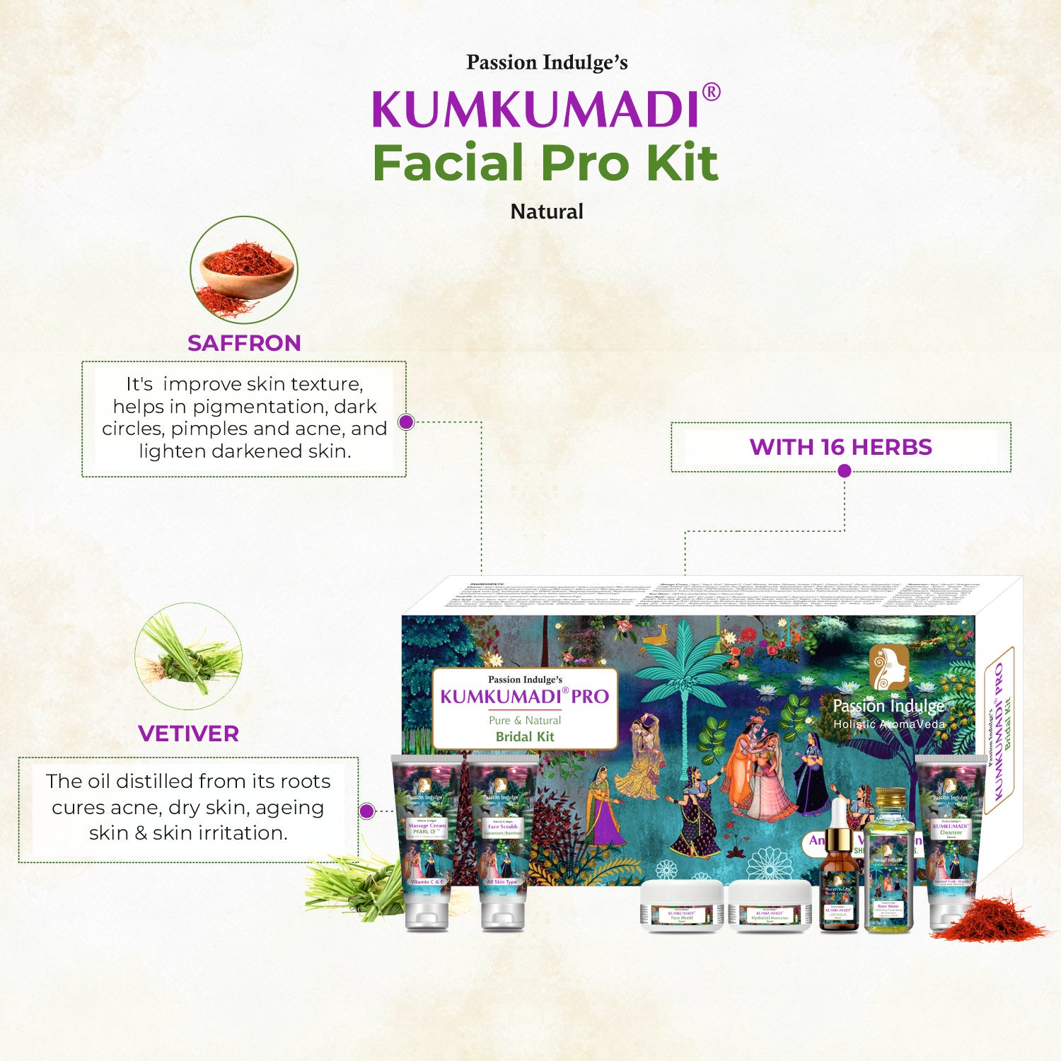Kumkumadi Pro-Bridal Facial Kit | Pure and Natural | For Skin Shine and Brightness With Saffron, Vetiver Oil, and 16 Herbs| All Skin Types | 7 Steps | Bridal Kit
