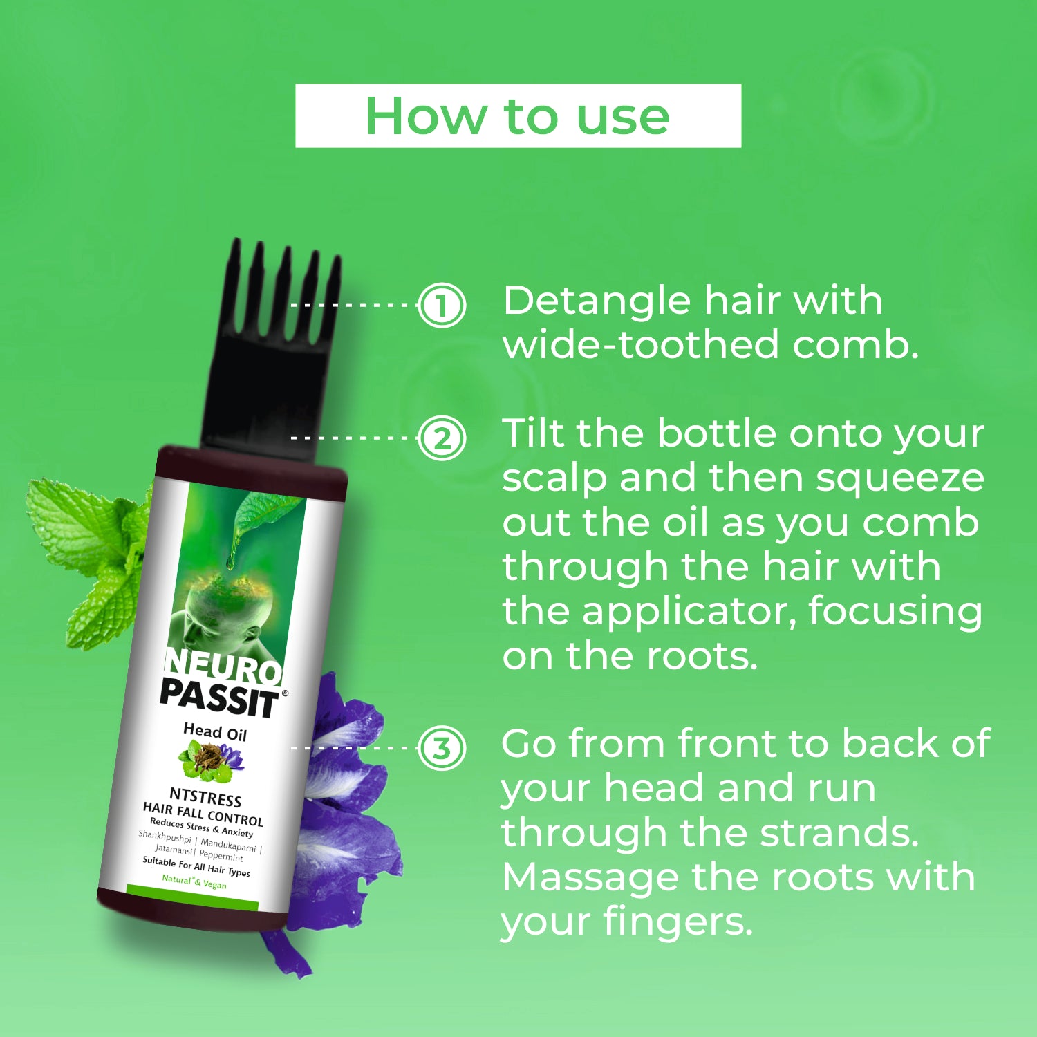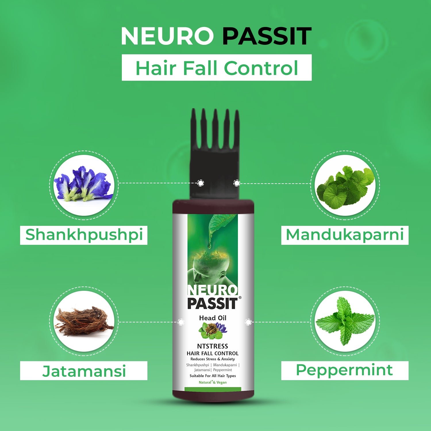 Natural Neuropassit NTstress Hair fall control & Cooling oil, Reduce Stress & Anxiety | Anti Dandruff | Promote Good Sleep | Hair Oil | Natural & Vegan | All Hair Type - 100ml - passionindulge