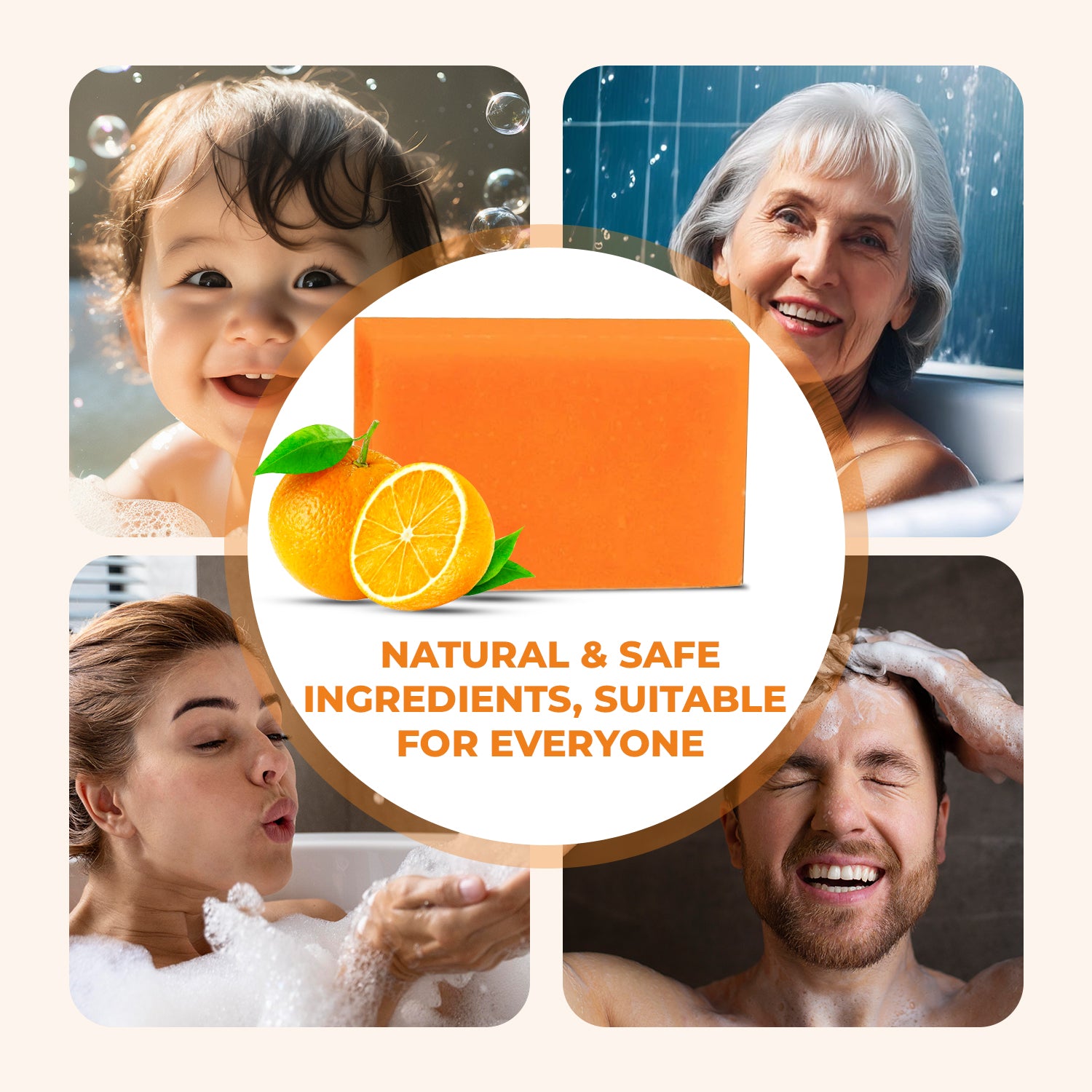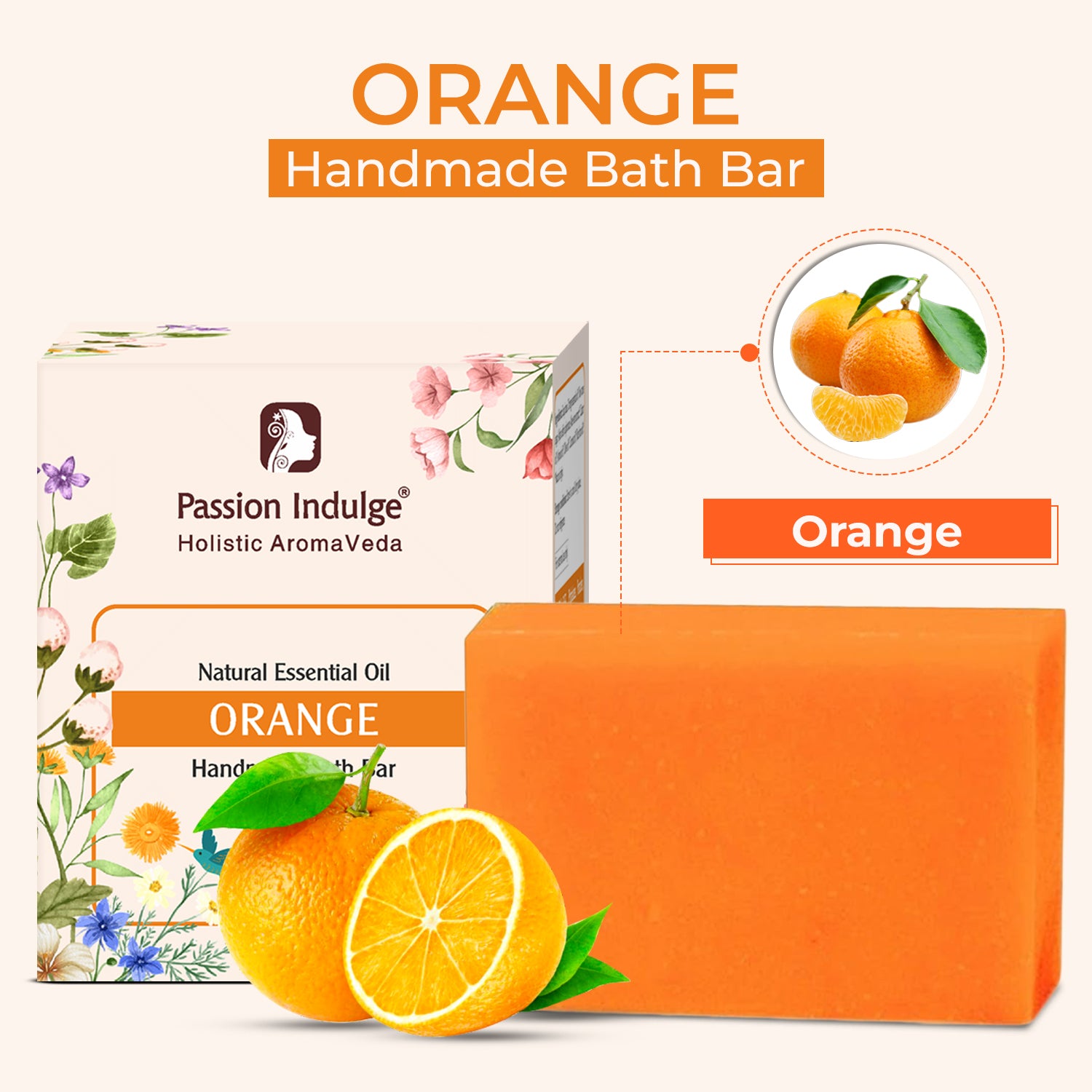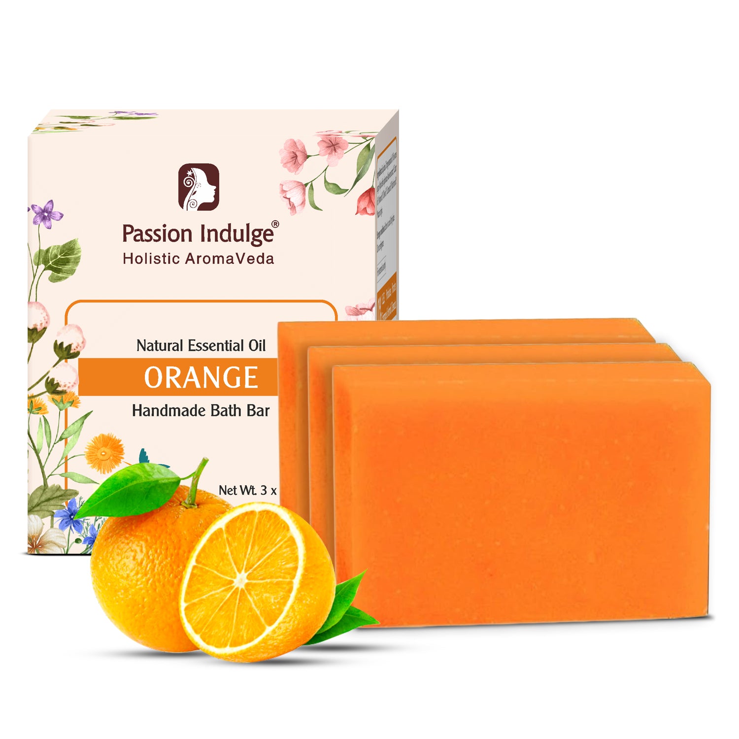 Handmade Bath Bar Soap Orange - each 100gm | Natural & Vegan | Aromatherapy | Peta Certified ( Pack of 3 )