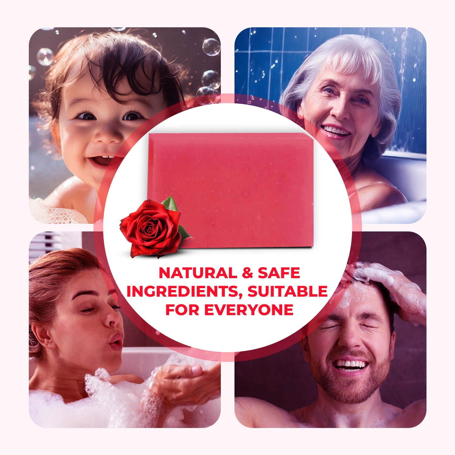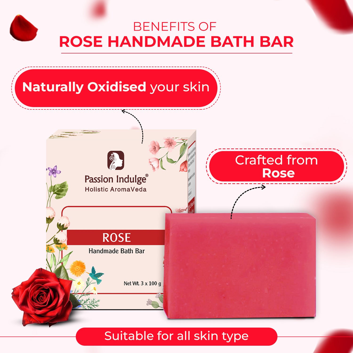Handmade Bath Bar Soap Rose - each 100gm | Natural & Vegan | Aromatherapy | Peta Certified ( Pack of 3 )