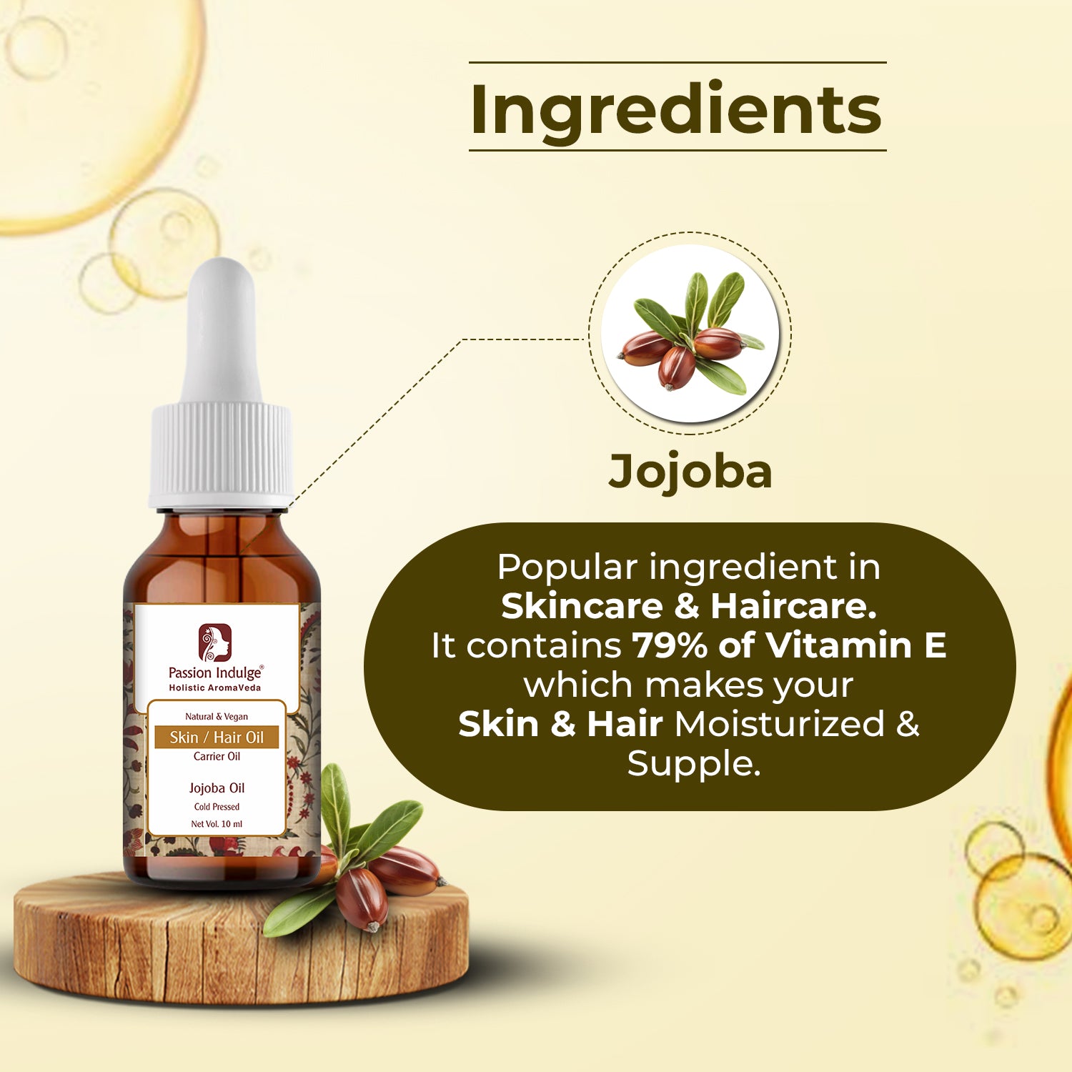 Jojoba Carrier Oil 10ml for Hair Growth | Reduces Hair Loss | Dandruff and Scalp Disorders | Help Prevent Hair Thinning | Natural & Vegan