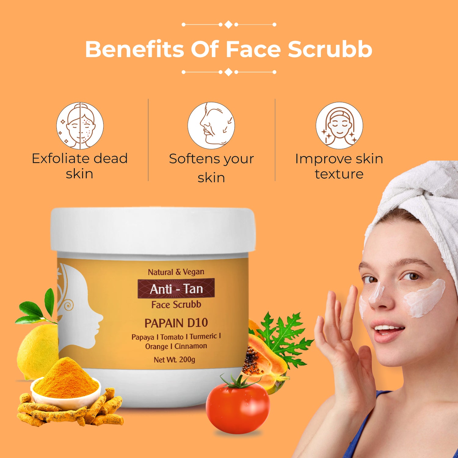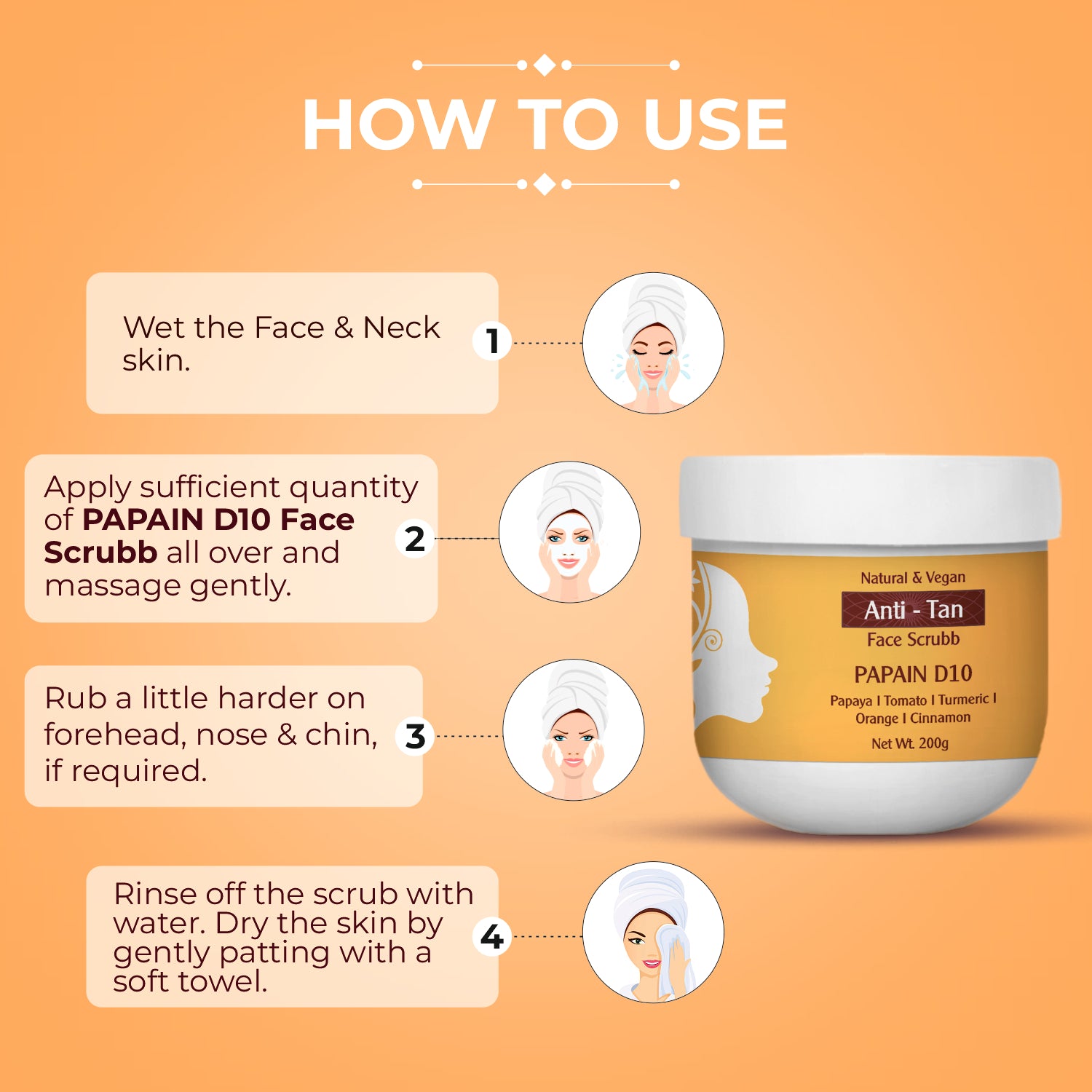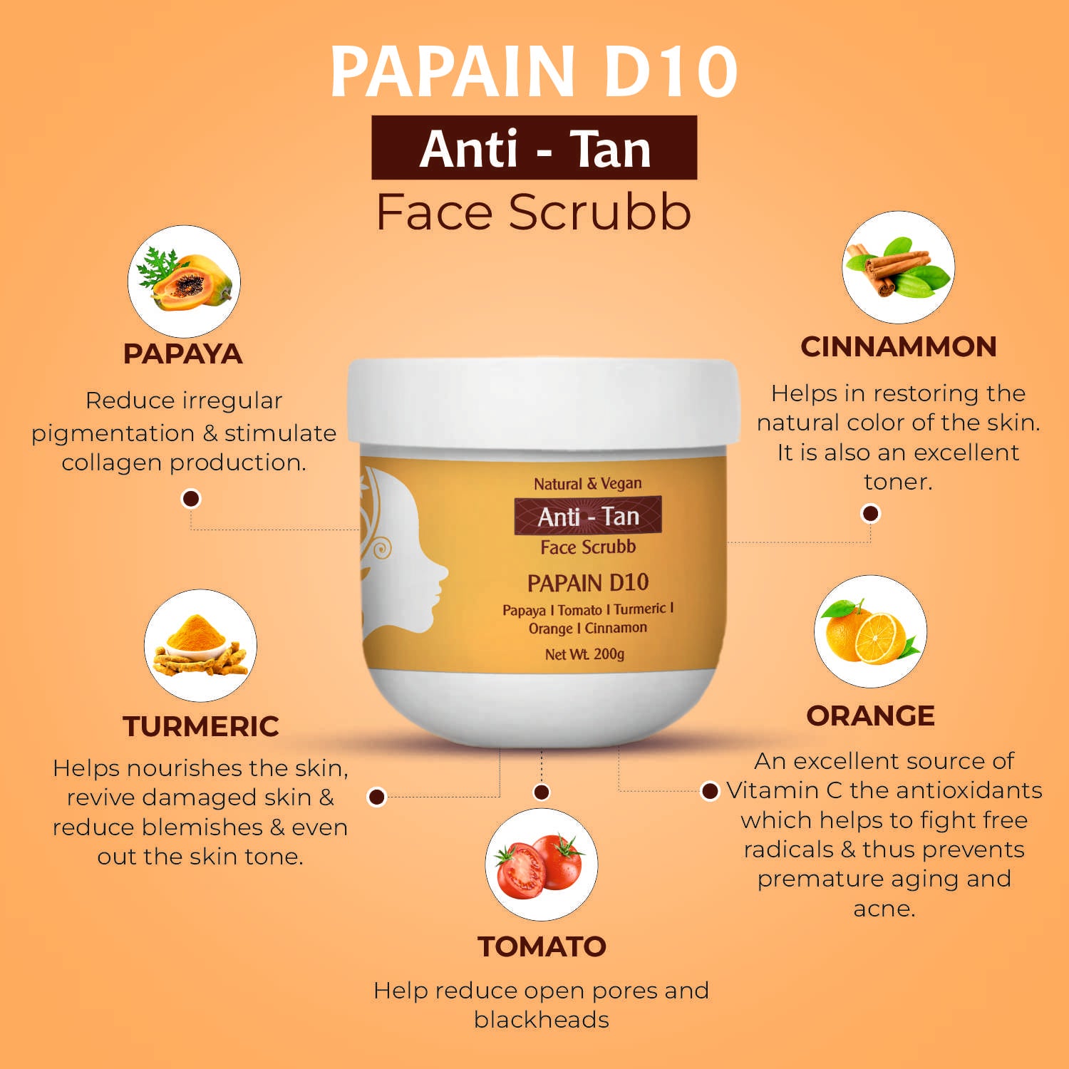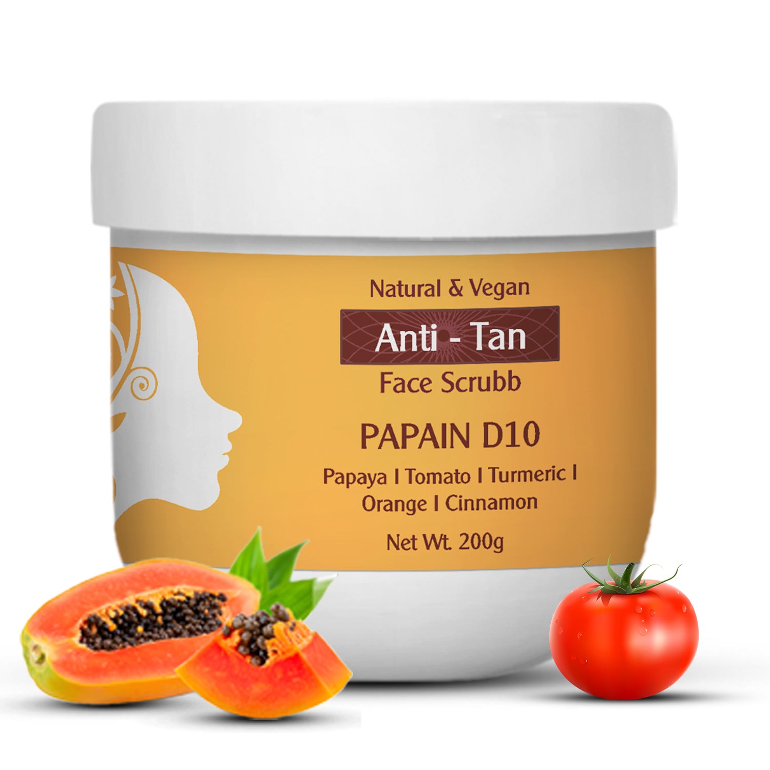 Natural Papain D10 Face Scrub | Reduces Tan | Improves Tone & Texture | Remove Dead Skin Cells | Vegan | Ayurvedic | All Skin Types (200 gm)