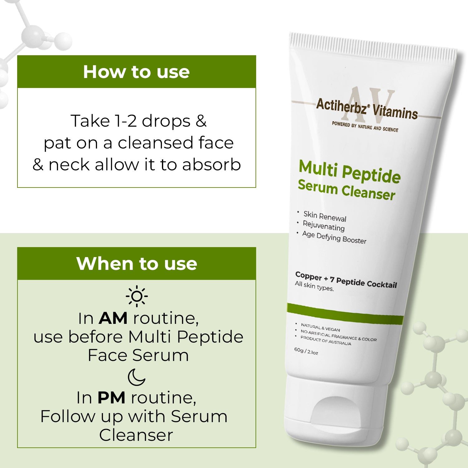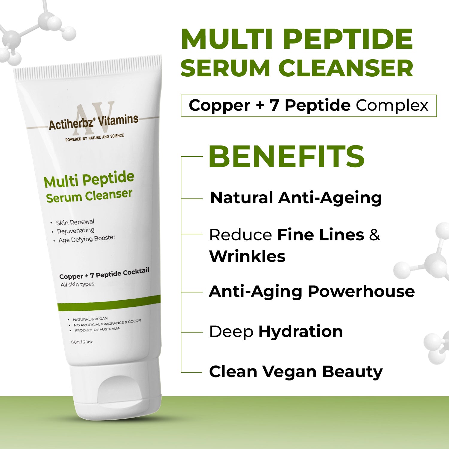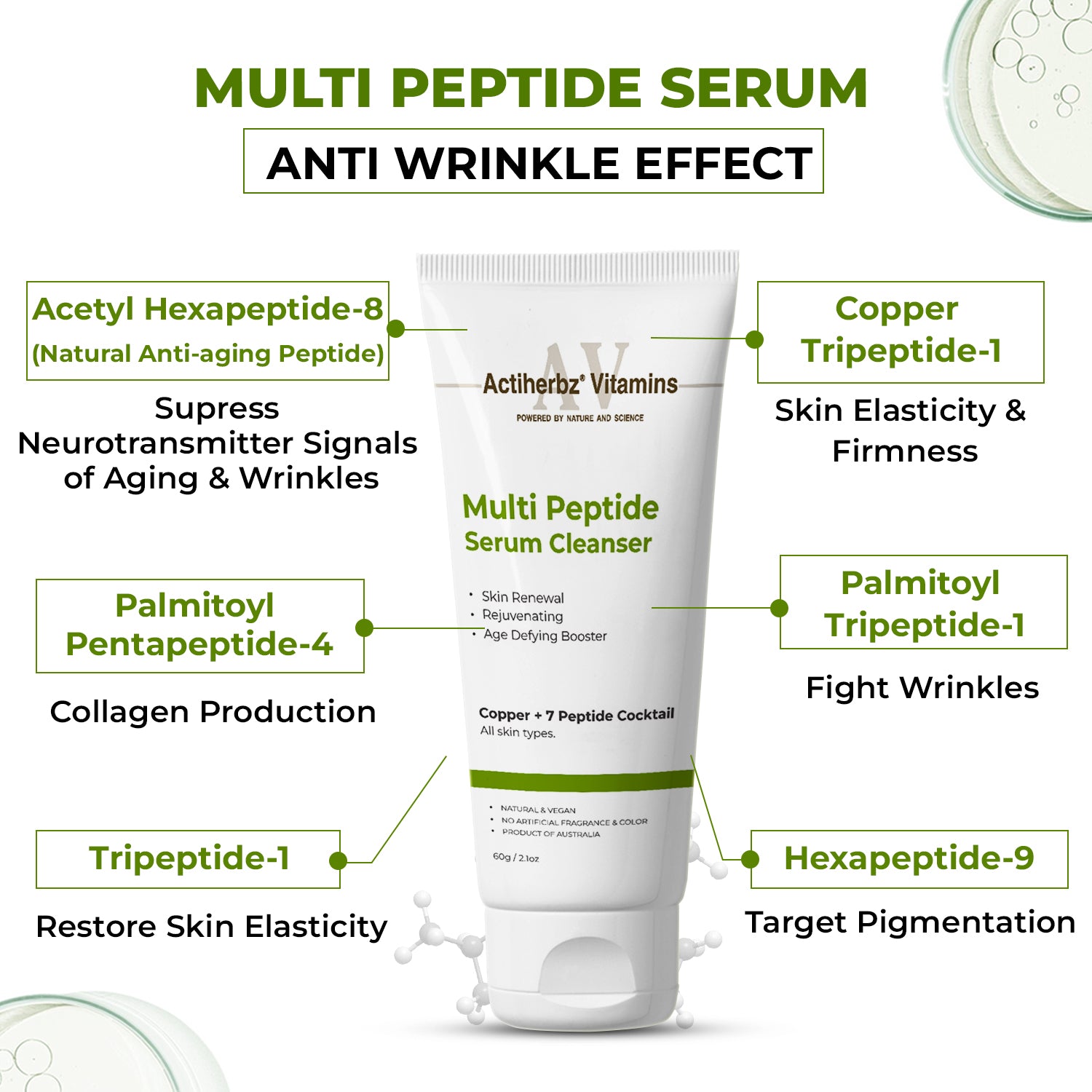 Actiherbz Multi Peptide + copper Serum Cleanser with 8 Peptide Cocktail | Skin Renewal, Rejuvenation & Age-Defying Booster | Hydrating Face wash Cleanser for All Skin Types | airline travel friendly 60ml