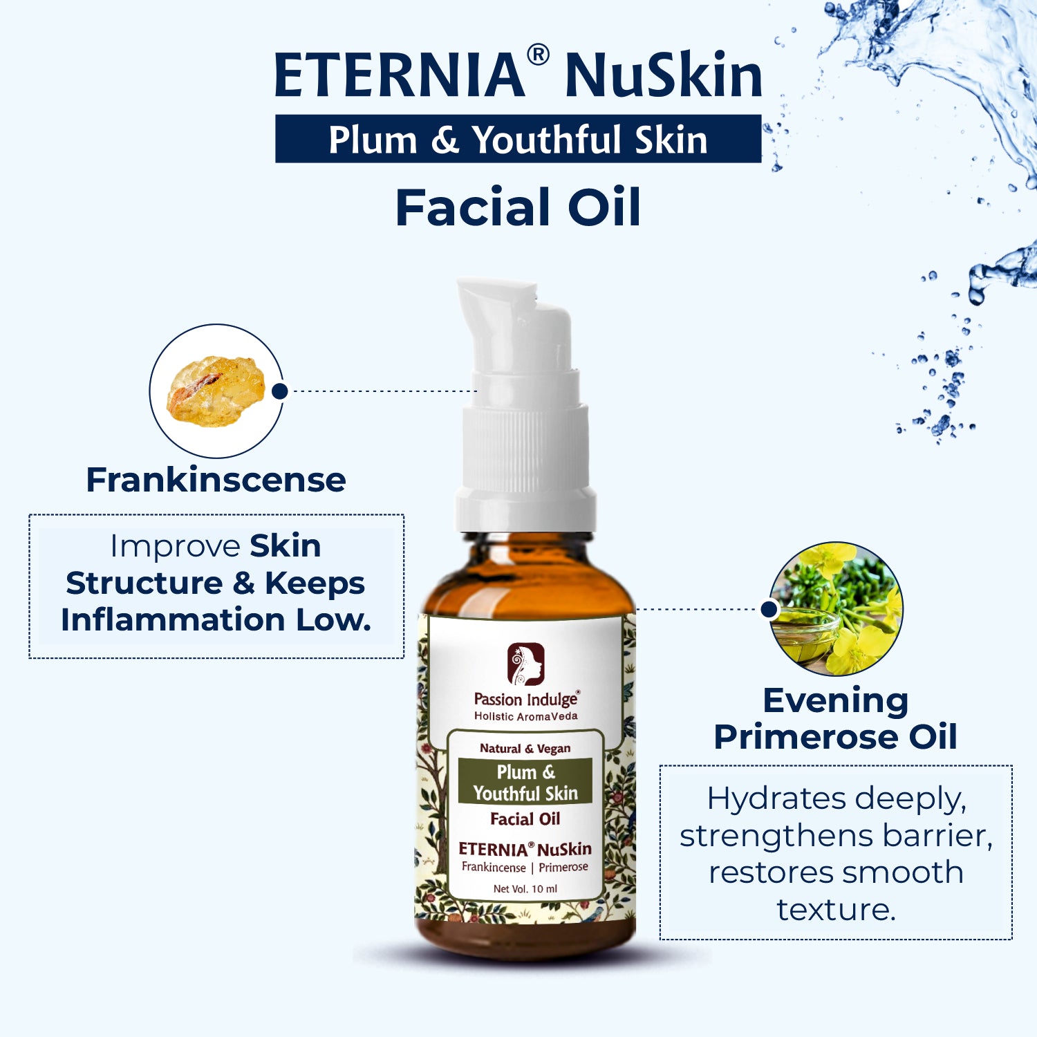 Passion Indulge Eternia Nuskin Frankincense & Evening Primrose Facial Oil | Anti-Aging Vegan Face Oil for 40+ Skin | Clean Beauty with Olive, Jojoba, Myrrh & Vitamin E | Reduces Fine Lines, Wrinkles & Dryness | No Fragrance, No Parabens, No Color – 10ml