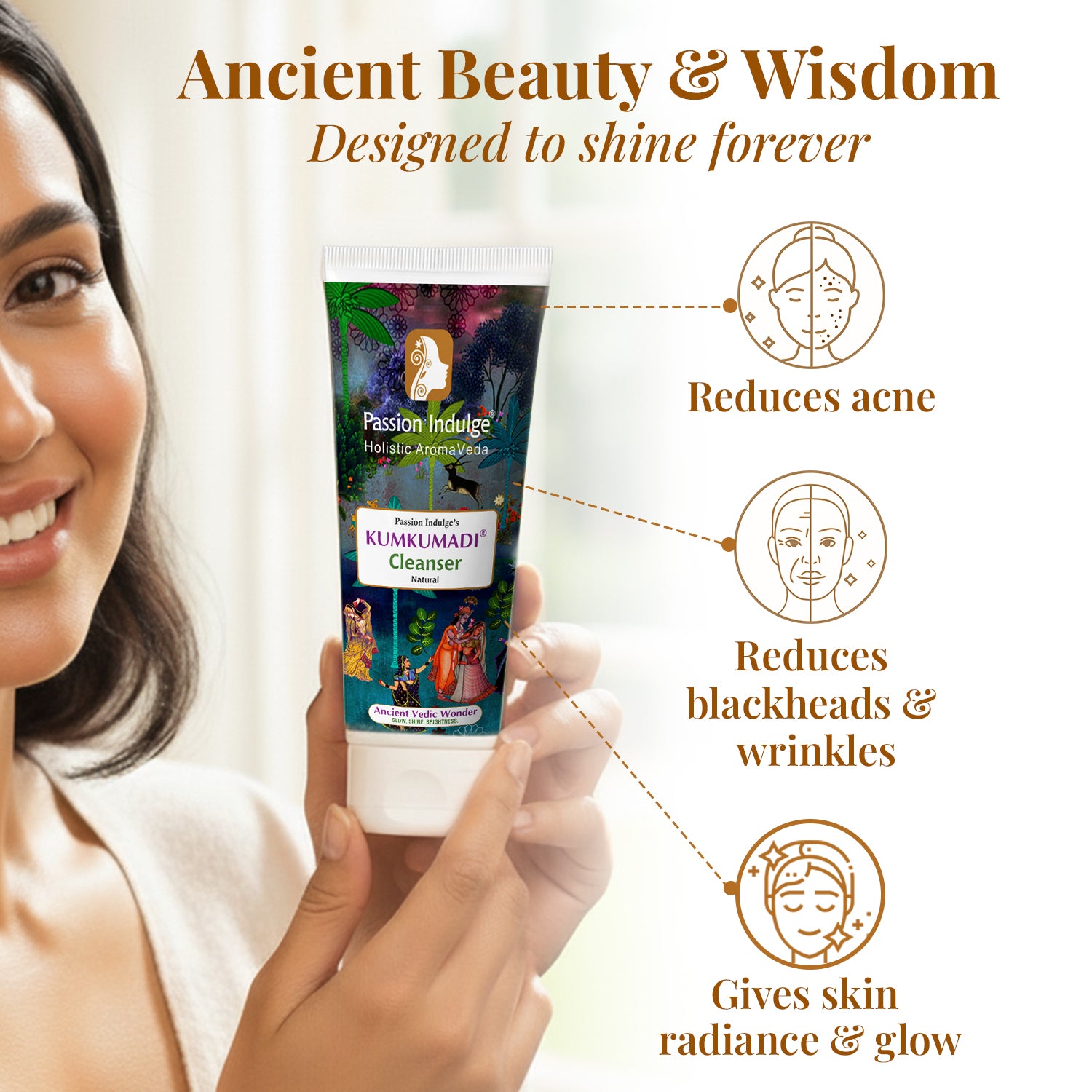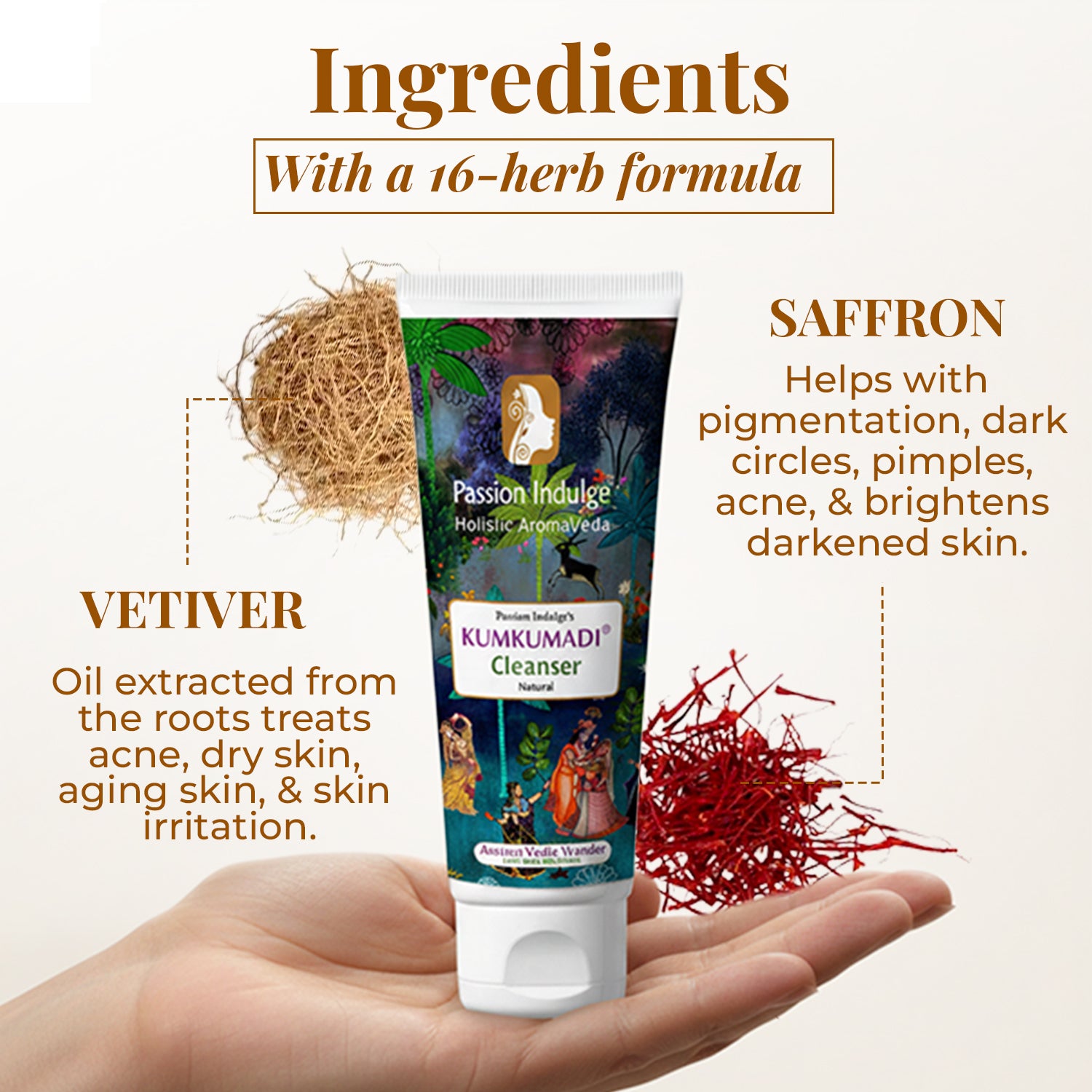 Kumkumadi Cleanser For Glowing Skin | Shine & Brightness | Anti Aging | Anti Wrinkle| Ayurvedic & Natural | with Saffron, Vetiver & 16 Herbs| All Skin Types - 100ml
